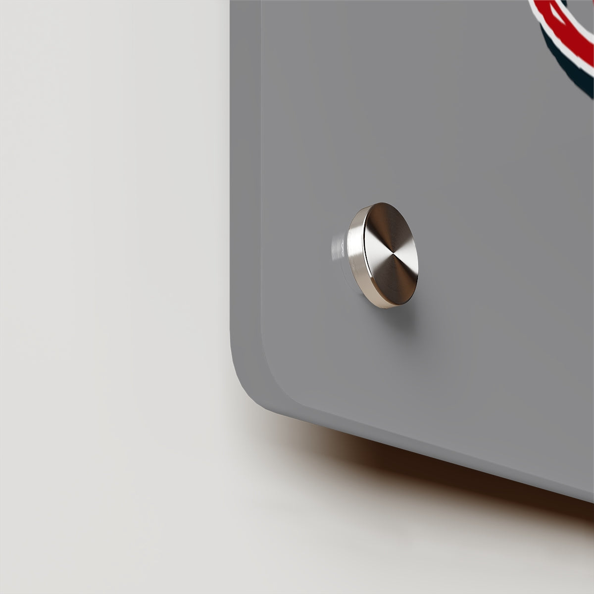 Acrylic art panels are a modern way to display beautiful and vibrant art that looks like it's embedded in clear glass. They have a clear, glossy acrylic surface and a white vinyl backing. Four silver stand-offs make it very easy to mount to the wall.
